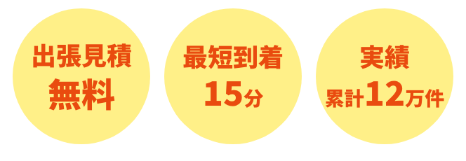 数多くの現場を経験した熟練のスタッフが24時間365日、常にエリア内を巡回することで、お困りのお客様のもとへ最短15分で到着が可能!