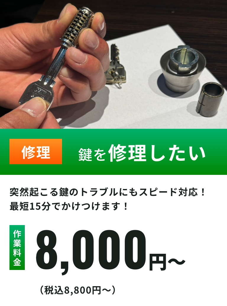 もちろんその際の費用は1円も発生しません。鍵のかけつけ本舗の安心明朗総額表示は、お客様からも信頼をいただいております。