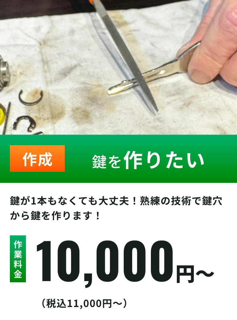 玄関ドアから金庫・車両・バイクまで鍵のことなら幅広く対応可能です。