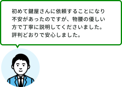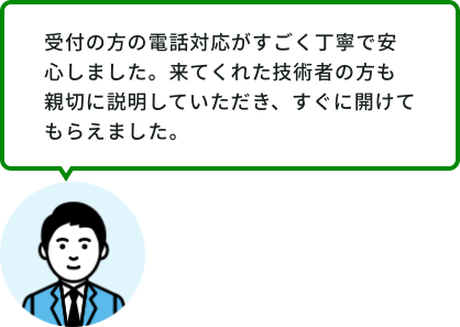 鍵開け・鍵のトラブルで実際にサービスをご提供したお客様の声です。